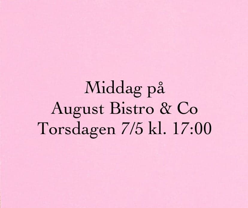 Torsdagen 7/5 kl. 17:00 träffas vi och äter något gott hos August Bistro & Co på Västra Gatan 62.